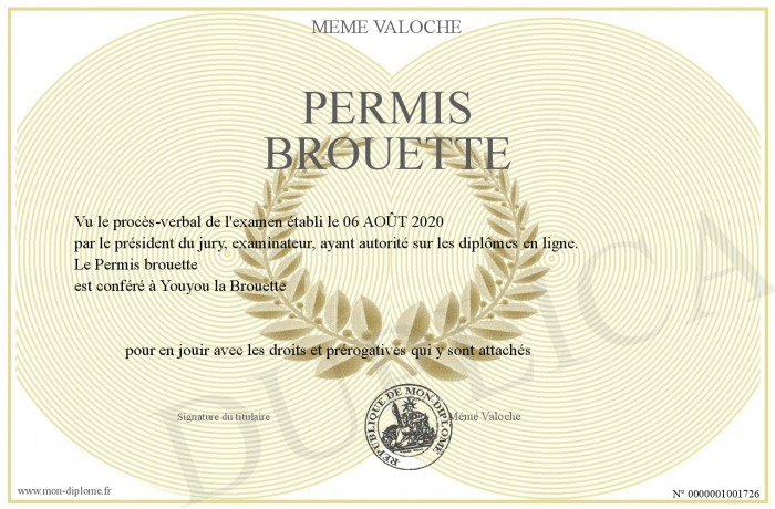 Envoyez par email votre PERMIS BROUETTE personalisé