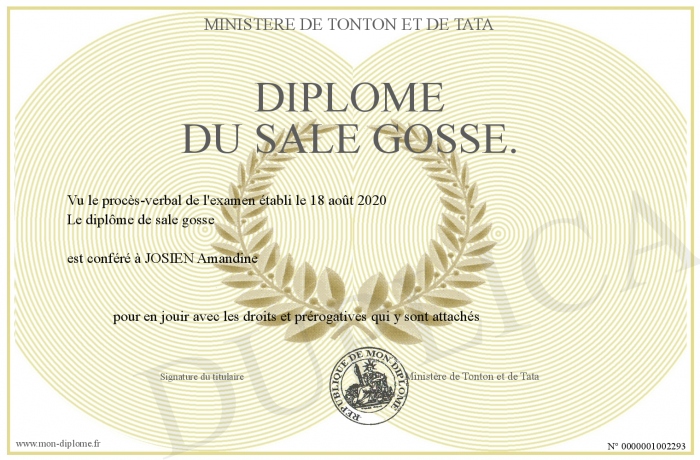 Envoyez par email votre Diplôme du sale gosse. personalisé