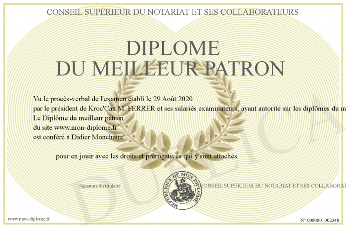 Envoyez par email votre Diplôme du meilleur patron personalisé