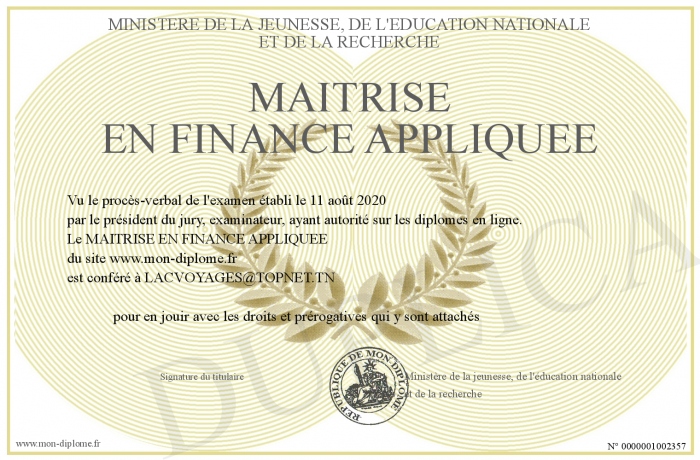 Envoyez par email votre MAITRISE EN FINANCE APPLIQUEE personalisé