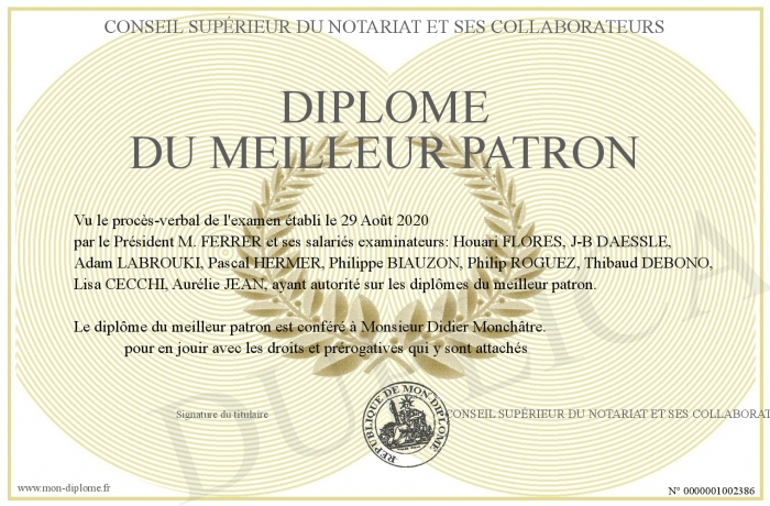 Envoyez par email votre Diplôme du meilleur patron personalisé