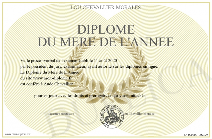 Envoyez par email votre Diplôme du Mère de L'Année personalisé