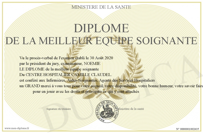 Envoyez par email votre Diplôme de la meilleur équipe soignante personalisé