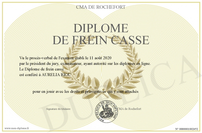 Envoyez par email votre Diplôme de frein cassé personalisé