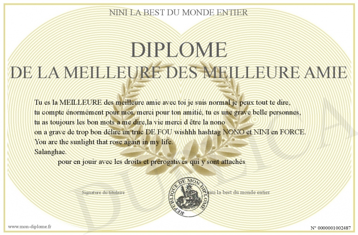Envoyez par email votre diplomé de la meilleure des meilleure amie personalisé