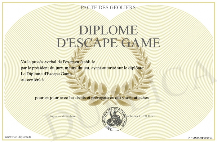 Envoyez par email votre Diplôme d'Escape Game personalisé