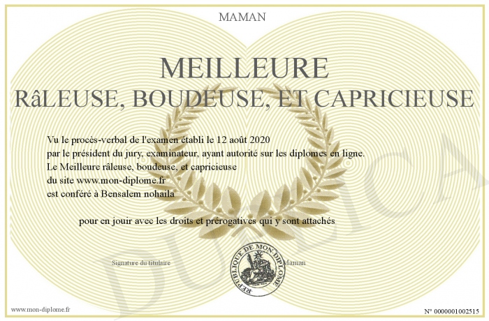 Envoyez par email votre Meilleure râleuse, boudeuse, et capricieuse personalisé