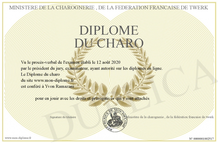 Envoyez par email votre Diplôme du charo personalisé