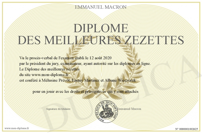 Envoyez par email votre Diplôme des meilleures zezettes personalisé