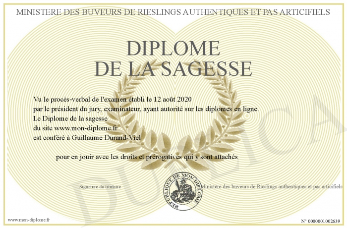 Envoyez par email votre Diplôme de la sagesse personalisé