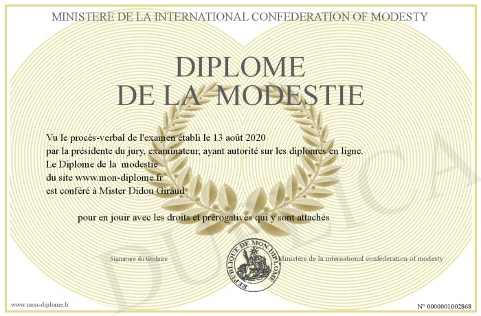 Envoyez par email votre Diplôme de la modestie personalisé