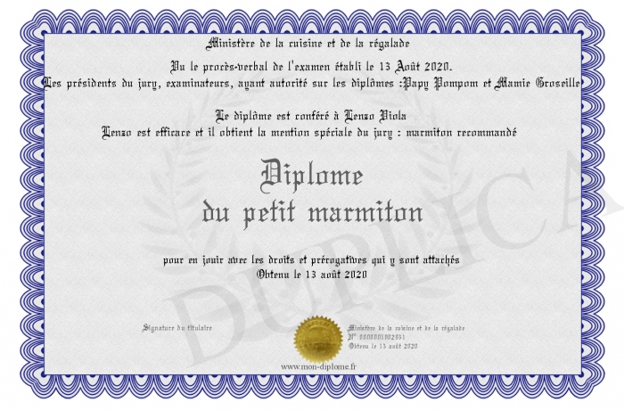 Envoyez par email votre Diplôme du petit marmiton personalisé