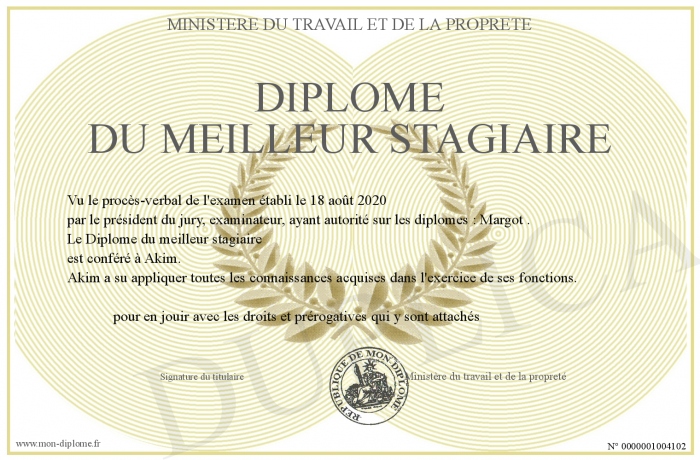 Envoyez par email votre Diplôme du meilleur stagiaire personalisé