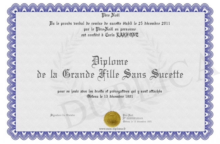 Envoyez par email votre Diplôme de la Grande Fille Sans Sucette personalisé