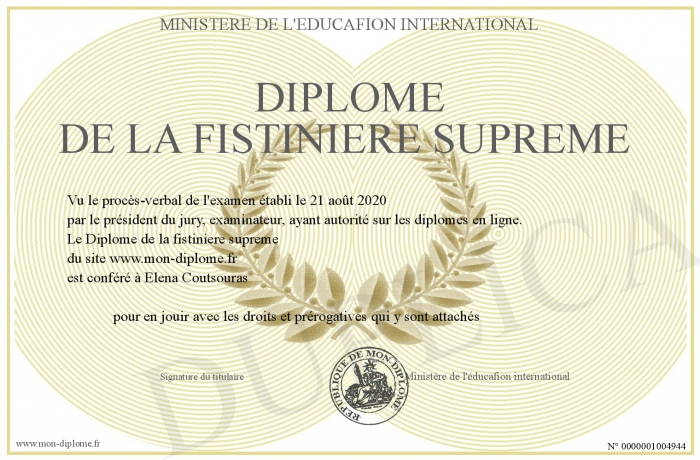 Envoyez par email votre Diplôme de la fistiniere supreme personalisé