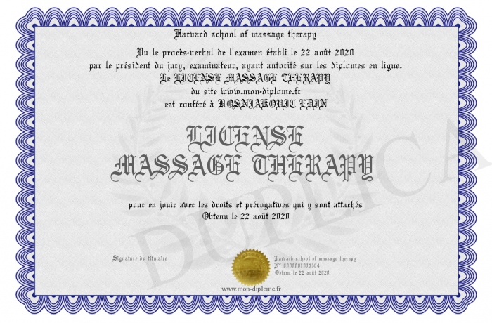 Envoyez par email votre LICENSE MASSAGE THERAPY personalisé