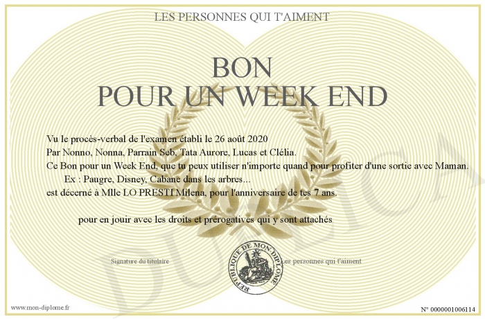 Envoyez par email votre Bon pour un Week End personalisé