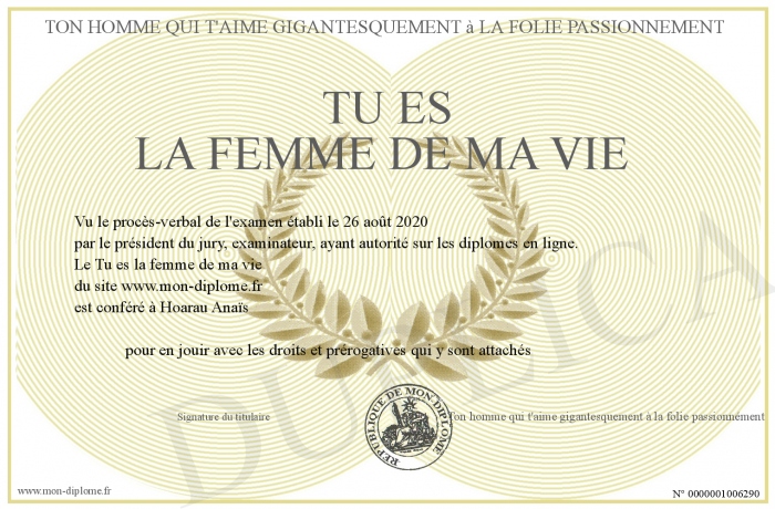 Envoyez par email votre Tu es la femme de ma vie personalisé