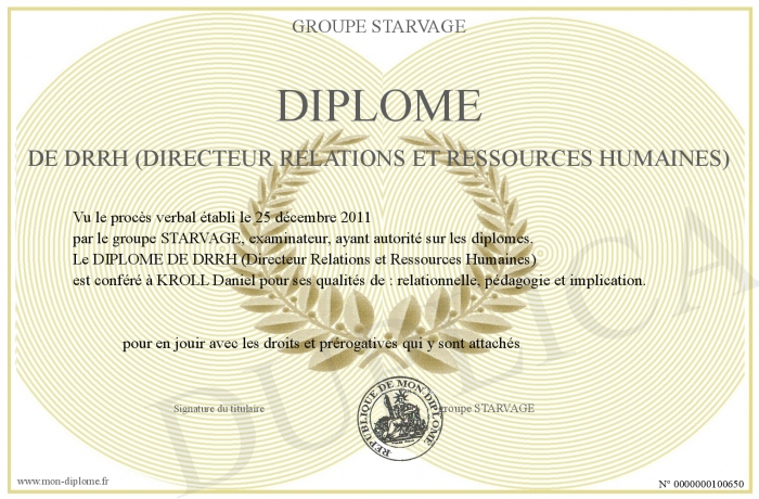Envoyez par email votre DIPLOME DE DRRH (Directeur Relations et Ressources Humaines) personalisé