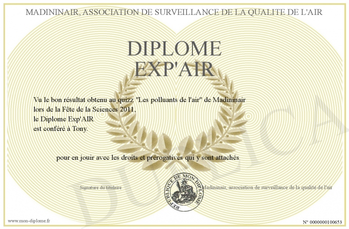 Envoyez par email votre Diplôme Exp'AIR personalisé