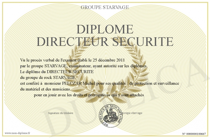 Envoyez par email votre DIPLOME DIRECTEUR SECURITE personalisé