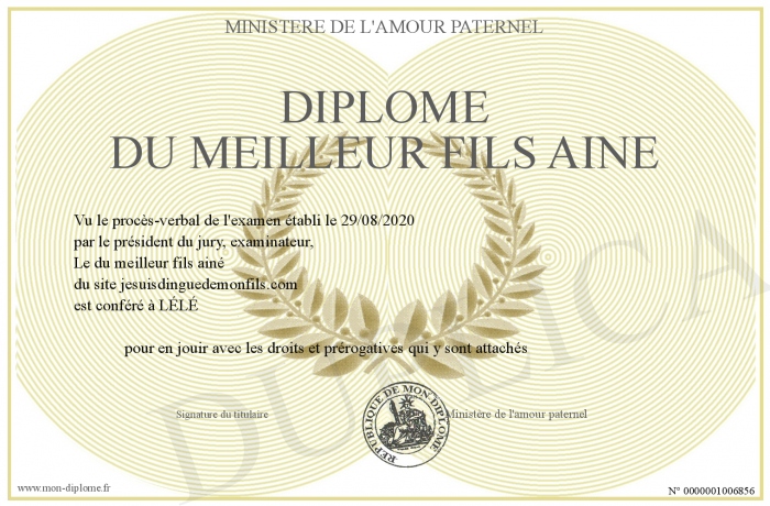 Envoyez par email votre Diplôme du Meilleur fils ainé personalisé