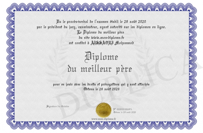 Envoyez par email votre Diplôme du meilleur père personalisé