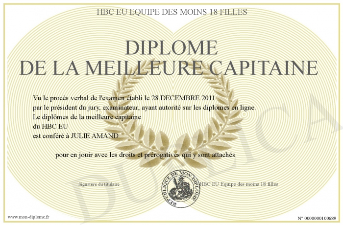 Envoyez par email votre Diplôme de la meilleure capitaine personalisé