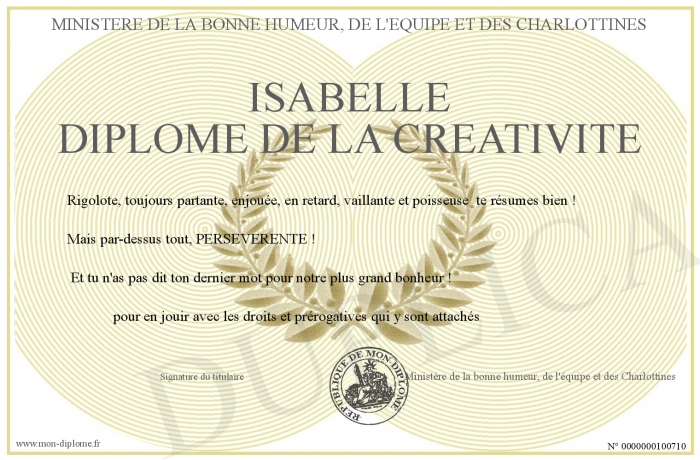 Envoyez par email votre Isabelle Diplôme de la Créativité personalisé
