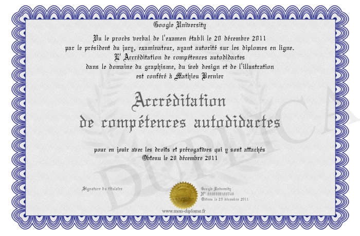Envoyez par email votre Accréditation de compétences autodidactes personalisé