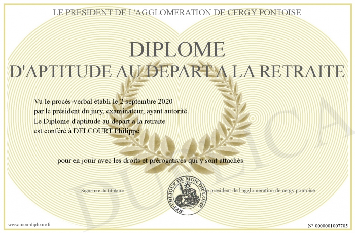 Envoyez par email votre Diplôme d'aptitude au départ a la retraite personalisé