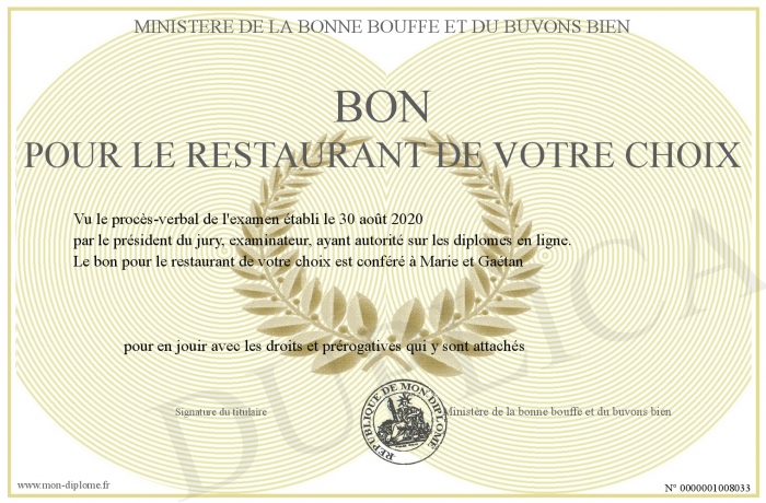Envoyez par email votre bon pour le restaurant de votre choix personalisé