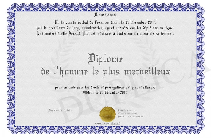 Envoyez par email votre Diplôme de l'homme le plus merveilleux personalisé