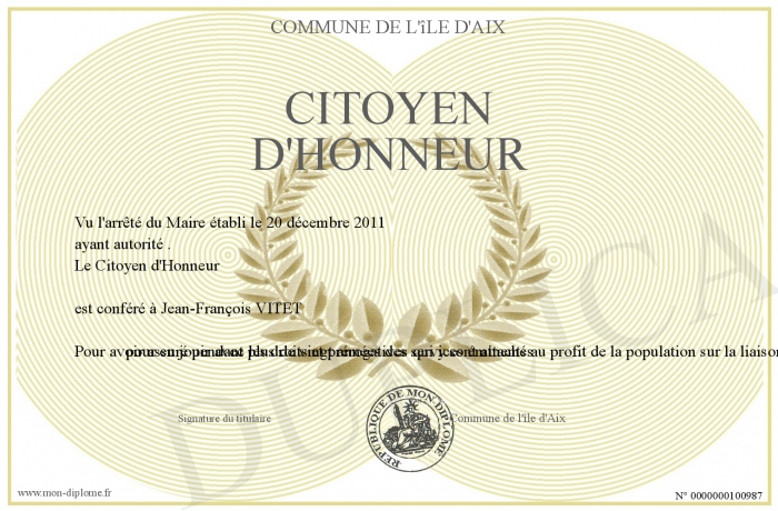 Envoyez par email votre Citoyen d'Honneur personalisé