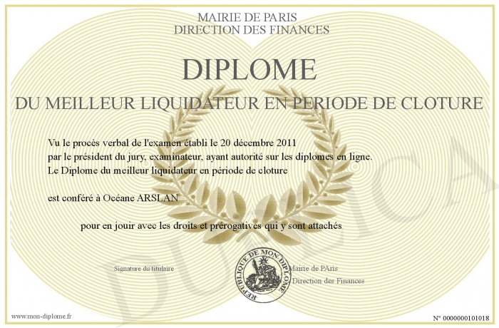 Envoyez par email votre Diplome du meilleur liquidateur en période de clôture personalisé