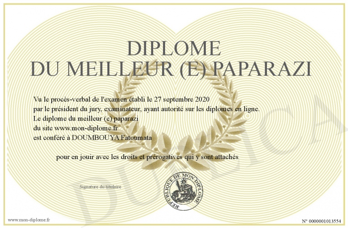 Envoyez par email votre diplôme du meilleur (e) paparazi personalisé