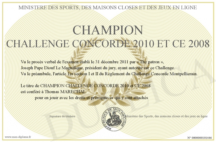 Envoyez par email votre CHAMPION CHALLENGE CONCORDE 2010 et CE 2008 personalisé