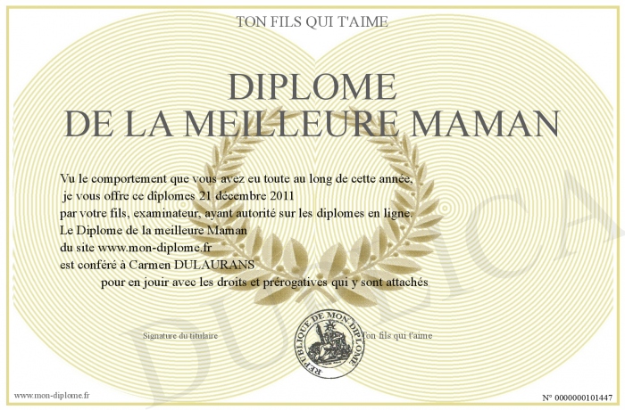 Envoyez par email votre Diplome de la meilleure Maman personalisé
