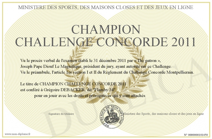 Envoyez par email votre CHAMPION CHALLENGE CONCORDE 2011 personalisé