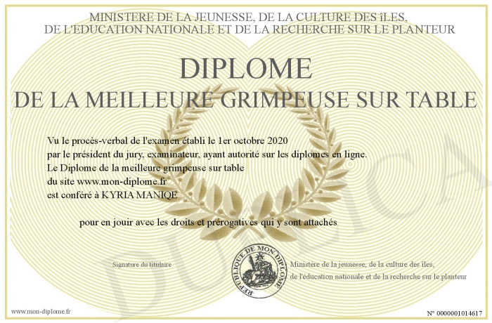 Envoyez par email votre Diplôme de la meilleure grimpeuse sur table personalisé