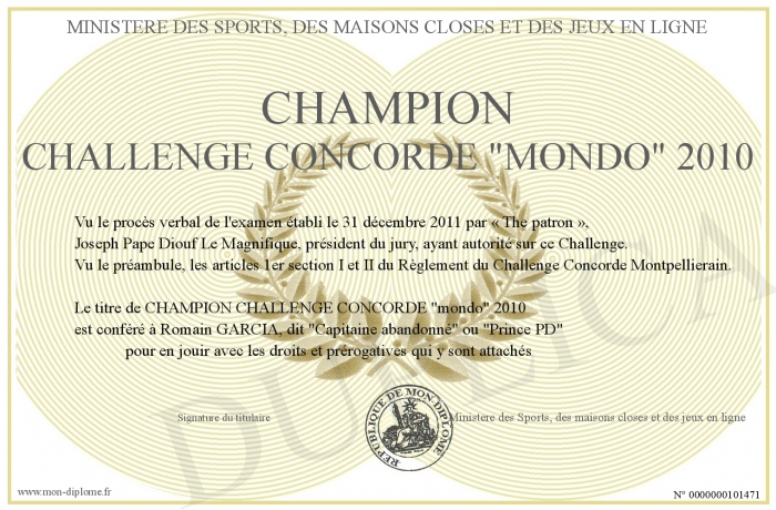 Envoyez par email votre CHAMPION CHALLENGE CONCORDE -mondo- 2010 personalisé