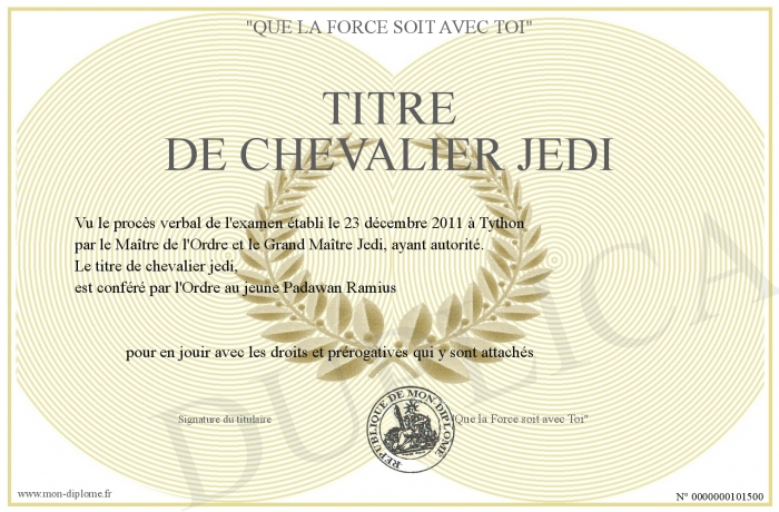 Envoyez par email votre titre de chevalier jedi personalisé