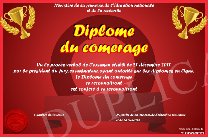 Envoyez par email votre Diplôme du comerage personalisé