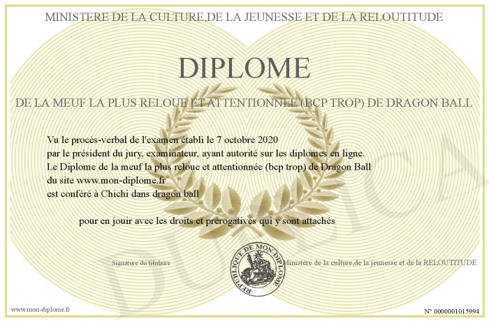 Envoyez par email votre Diplôme de la meuf la plus reloue et attentionnée (bcp trop) de Dragon Ball personalisé