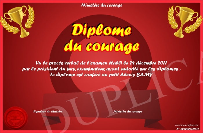 Envoyez par email votre Diplôme du courage personalisé