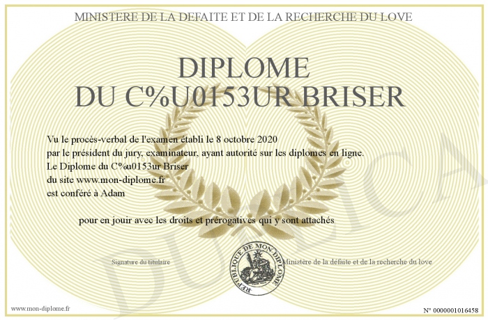 Envoyez par email votre Diplôme du Coeur Briser personalisé