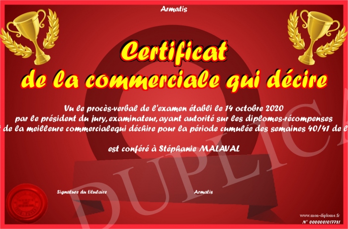 Envoyez par email votre Certificat de la commerciale qui décire personalisé