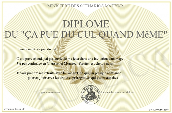 Envoyez par email votre Diplôme du -Ça pue du cul quand même- personalisé