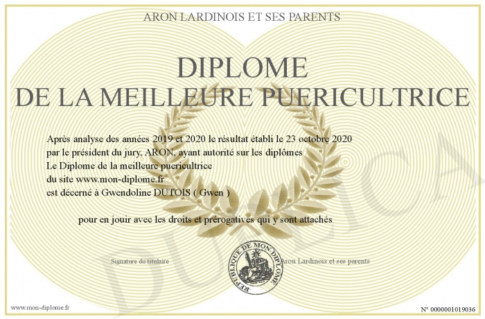 Envoyez par email votre Diplôme de la meilleure puericultrice personalisé