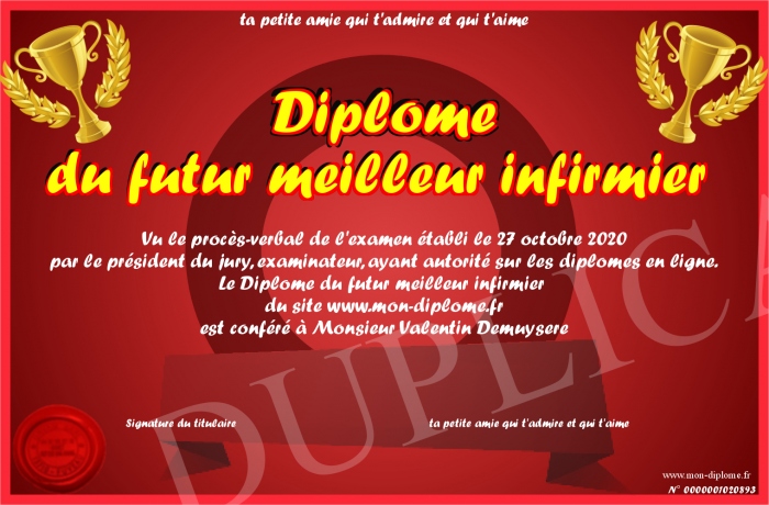 Envoyez par email votre Diplôme du futur meilleur infirmier personalisé